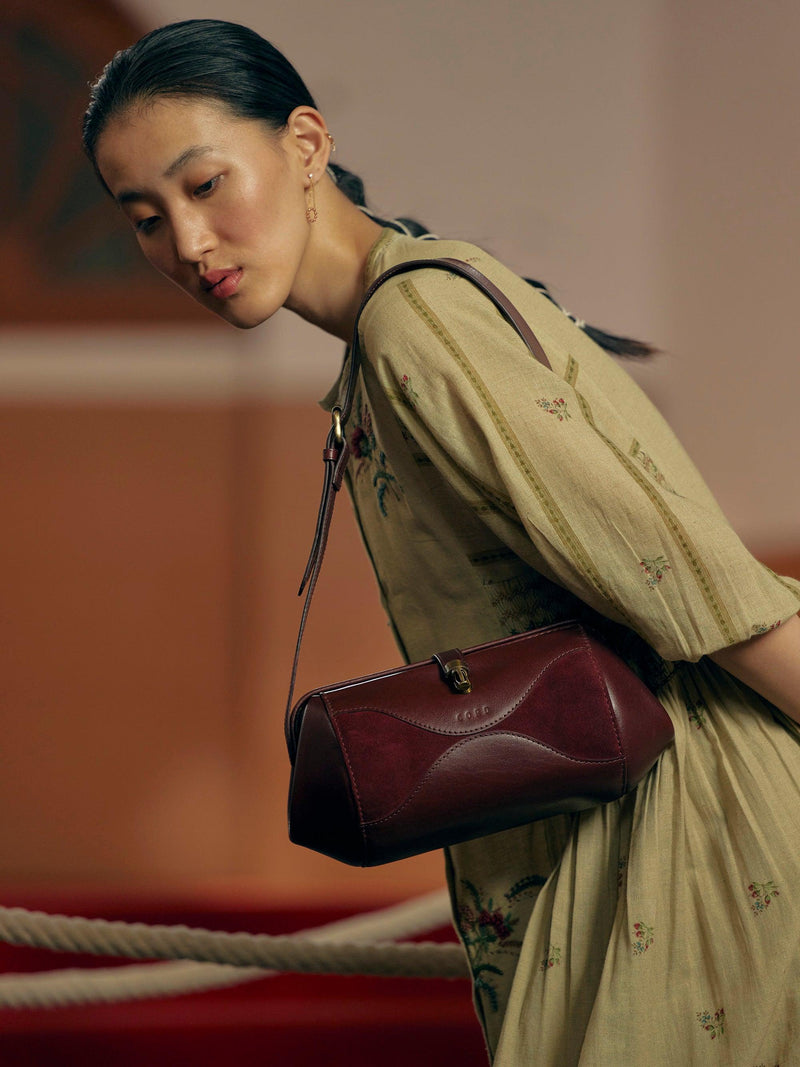 The Judy Bag is for the woman who loves a statement accessory that doesn’t shout — it whispers elegance. With its sculpted form and warm cherry tone, it’s the perfect blend of retro inspiration and contemporary design.