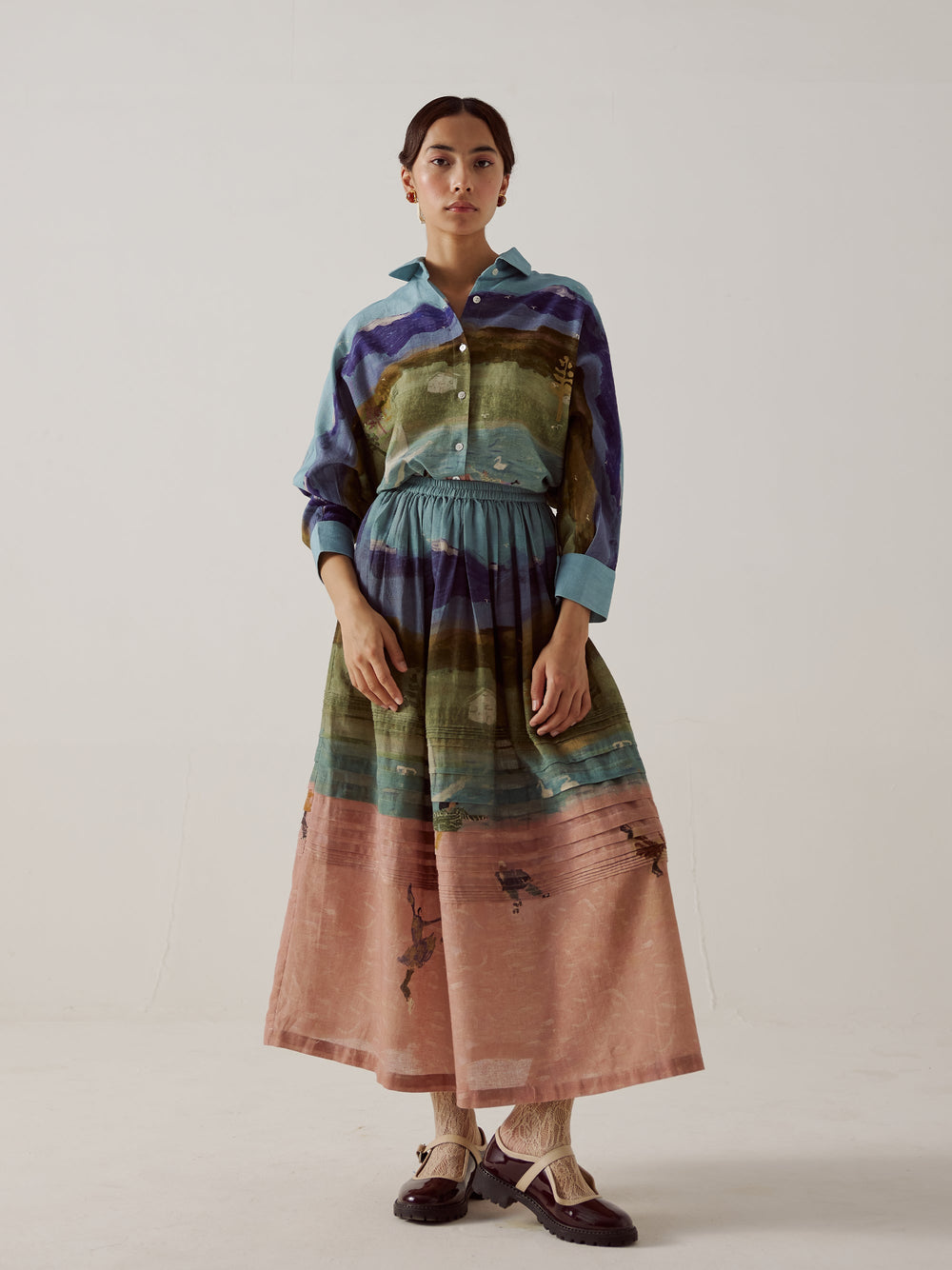 Pair it with the Pintuck Skirt, which flows gracefully in an A-line silhouette. With its elasticated waistband, this skirt guarantees comfort while offering a sophisticated summer silhouette. As a two-piece set, this pairing exudes elegance without effort.
