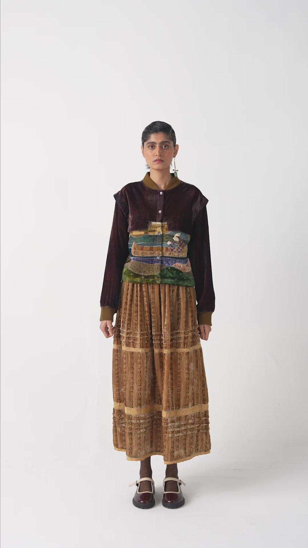 The Bert Set pairs the intricately embroidered Bert Jacket with the elegant Emily Skirt. Crafted from premium wool, the jacket showcases exquisite hand embroidery & applique and folk-inspired detailing, while the skirt complements it with a graceful silhouette—together creating a refined ensemble of warmth, artistry, and timeless charm.