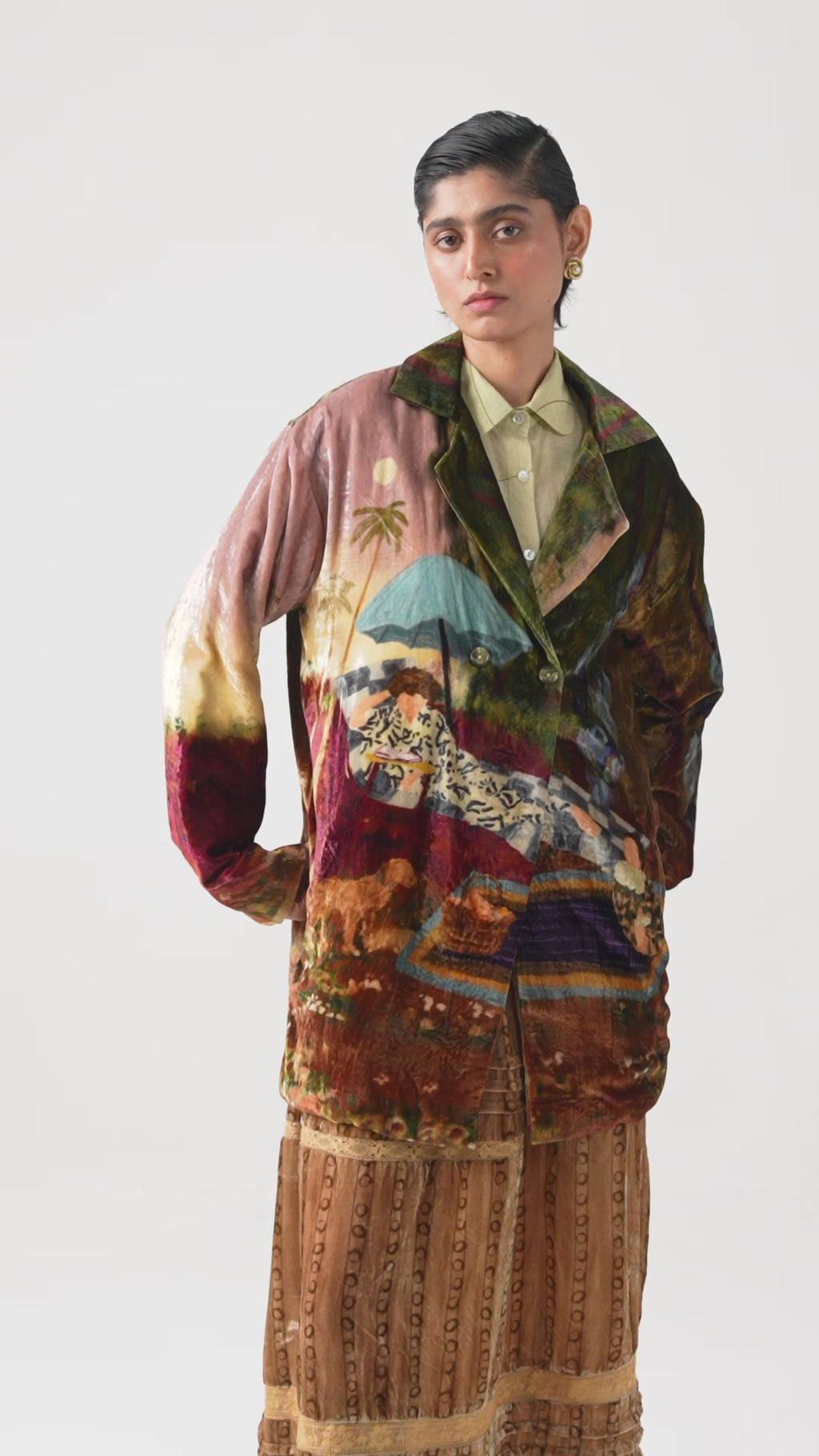 The Lisbon Set pairs the chic Lisbon Jacket in our Lakeside Print with relaxed lounge pants. The short, relaxed-fit jacket features a lapel collar and puffed sleeves, bringing effortless charm, while the pants offer ease and versatility—together creating a stylish, contemporary ensemble.